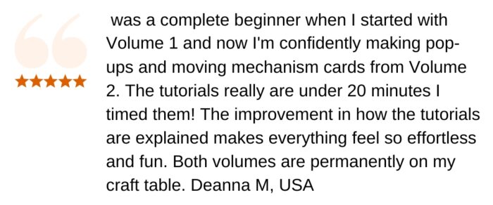 Absolutely! Every tutorial has been refined to be even clearer and easier than Volume 1, and each one takes less than 20 minutes. Whether you’re picking up card making supplies for the first time or you’ve been crafting for years, you’ll find these tutorials completely accessible and enjoyable.