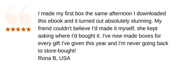 I created this ebook because I had one of those ideas I just couldn’t keep to myself. What if you never had to buy a gift box or storage box again? Once I discovered how easy and satisfying it is to make your own beautiful paper boxes, I knew I had to share it with you. I hope every project in this book brings you as much joy to make as it does to give!