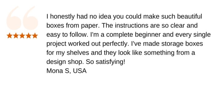 Absolutely! Every project includes clear step-by-step instructions with photos, so even if you’ve never made a paper box before, you’ll be able to follow along with confidence. There’s something for every skill level.