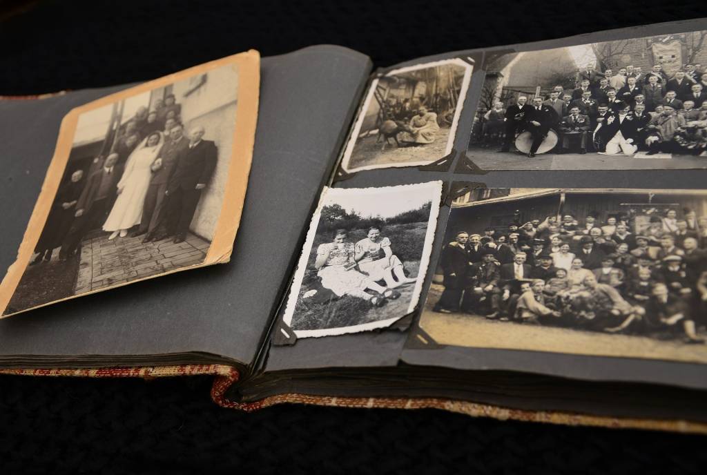 The best thing to use are photo tabs! Not just because it’s easy and clean but because it’ll be easier to remove the photos. You might not think that’ll be necessary but when I had to take out photos for my son’s heritage school work, it was not easy!