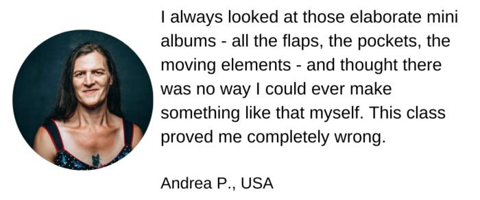 Find out how to make amazing mini albums with pockets, flaps and moving elements – with clear, complete, step-by-step video lessons that hold nothing back.